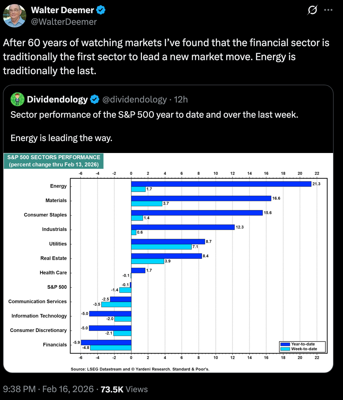 Client Update Feb 17 2026For the short week of February 17-20 2026cooljk007Feb 17, 2026∙ Paid1ShareDividendology is not the focus, but the gold nuggets of experienced market analysis from Walter Deemer is. You can read about the legacy he has made, and learn chart analysis the professional way thr…This post is for paid subscribersSubscribeAlready a paid subscriber? Sign inPreviousNext